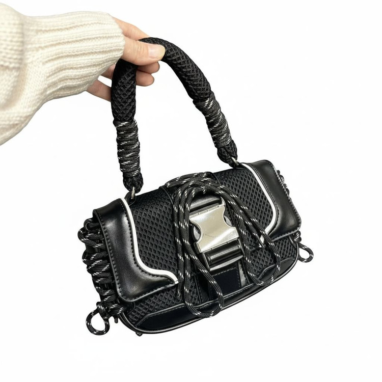 اگر به دنبال یک کیف زنانه اسپرت خاص و متفاوت هستید، این مدل با طراحی مدرن و بند طنابی انتخابی فوقالعاده برای استایلهای روزمره و خیابانی است. ترکیب متریال مشبک با چرم مصنوعی باکیفیت، ظاهری اسپرت و ترند به کیف داده که کاملاً مناسب استایلهای کژوال و استریت استایل میباشد.