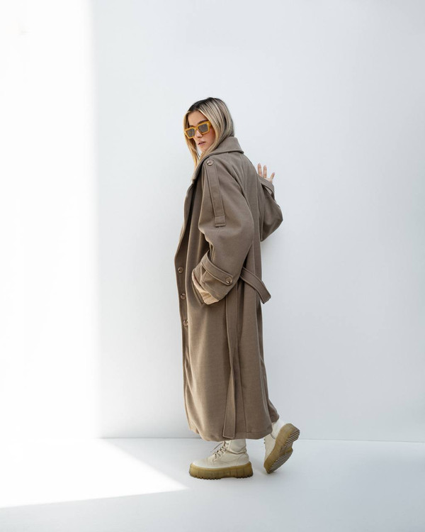 یقه برگردان کلاسیک، آستینهای آزاد و کمربند همجنس، امکان تنظیم فرم لباس روی بدن را فراهم میکند و در عین راحتی، استایلی مرتب و خاص میسازد. این پالتو گزینهای ایدهآل برای استایلهای روزمره، نیمهرسمی و حتی مینیمال خیابانی است.
