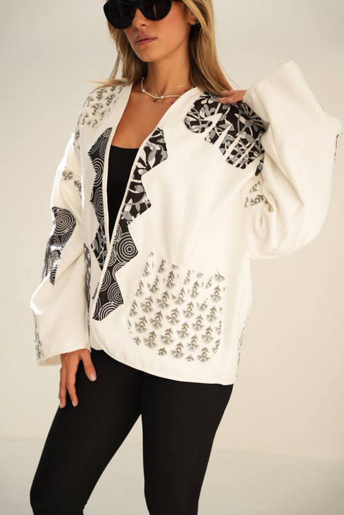 طراحی بدون دکمه و یقه باز آن باعث میشود بهصورت لایهای استفاده شود و استایلی مینیمال اما چشمگیر بسازد. آستینهای آزاد و فرم رها، راحتی را در کنار ظاهر شیک فراهم کرده و این کت را به گزینهای مناسب برای استایل روزمره خاص، دورهمی یا حتی استایل نیمهرسمی تبدیل میکند.
