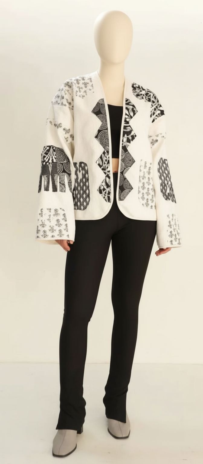 طراحی بدون دکمه و یقه باز آن باعث میشود بهصورت لایهای استفاده شود و استایلی مینیمال اما چشمگیر بسازد. آستینهای آزاد و فرم رها، راحتی را در کنار ظاهر شیک فراهم کرده و این کت را به گزینهای مناسب برای استایل روزمره خاص، دورهمی یا حتی استایل نیمهرسمی تبدیل میکند.
