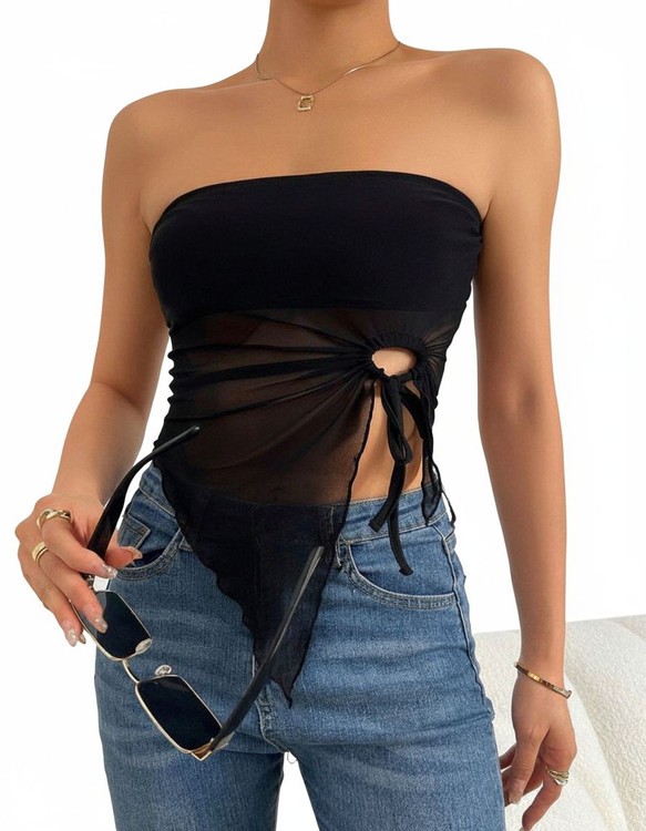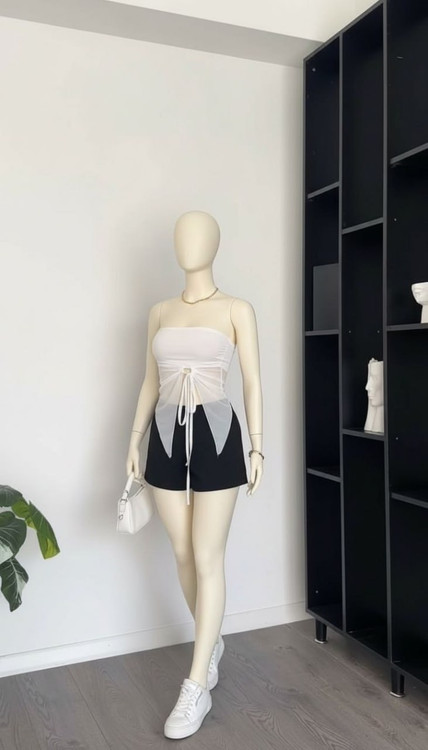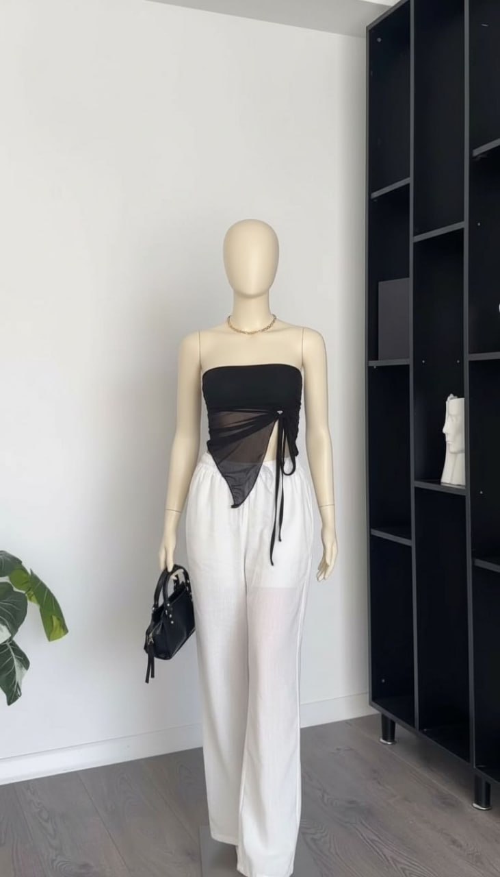 اگر به دنبال یک نیمتنه زنانه خاص و متفاوت برای استایل مهمانی یا استریت استایل هستید، این کراپ تاپ مشکی با طراحی نامتقارن و جزئیات ظریف، انتخابی جسورانه و مدرن است. ترکیب پارچه ساده و بخش لطیف حریر/تور در طراحی آن، جلوهای جذاب و ترند ایجاد میکند.