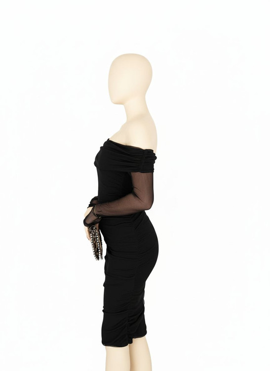 پیراهن میدی مجلسی یقه قایقی با آستین حریر