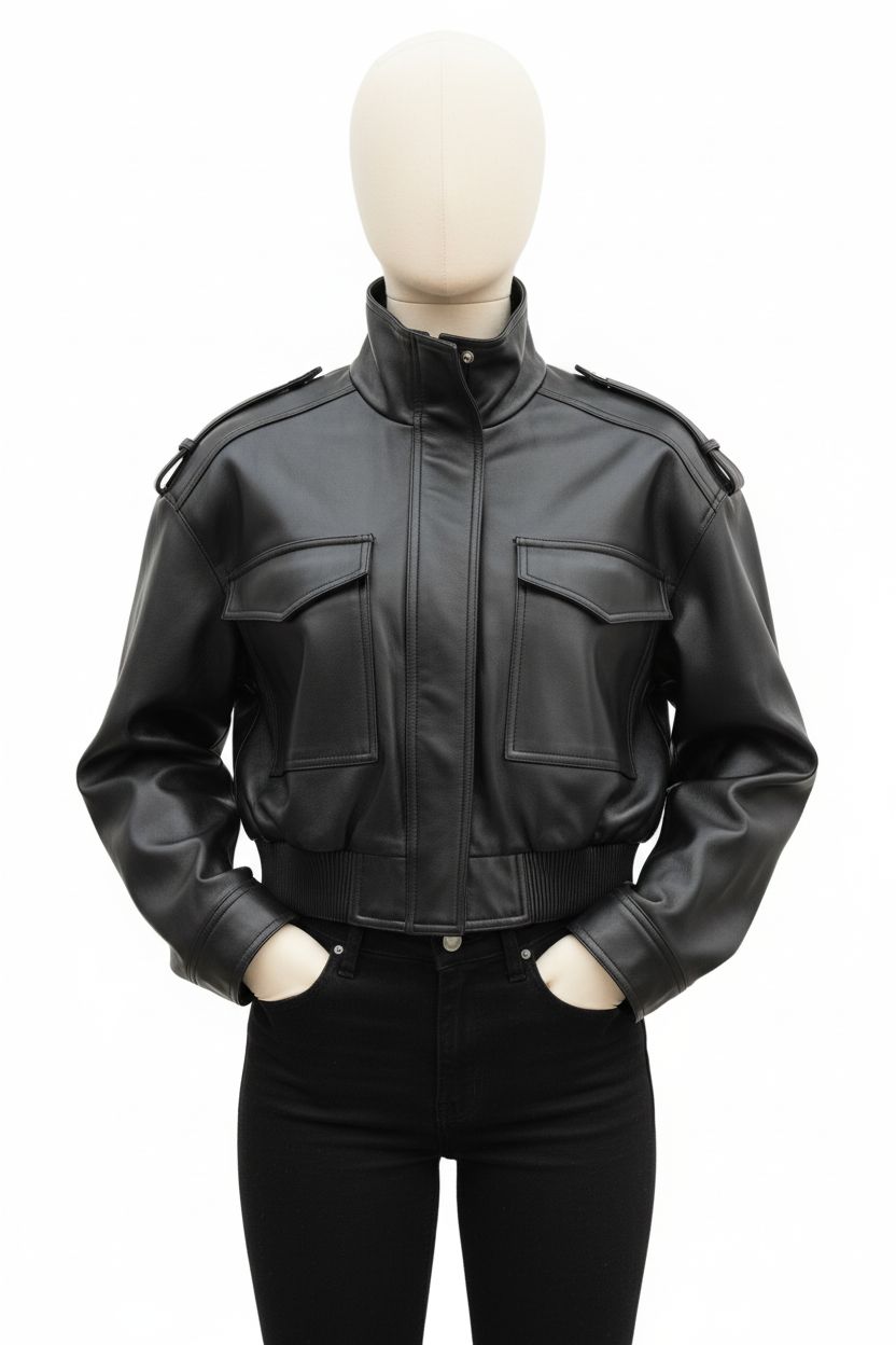 مدل: کت چرم کوتاه (کراپ)