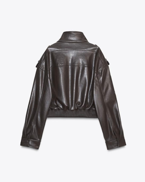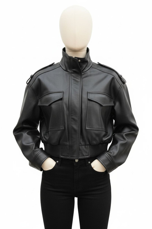 کت چرم زنانه کوتاه یقه ایستاده